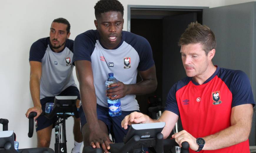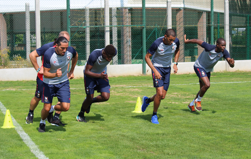 Sous la houlette de l’ensemble du staff, les dix joueurs présents ce matin ont pu participer à une séance d’environ 2h avec footing, travail foncier, RPM et musculation au programme. A noter pour cette pré-reprise, le retour de Chaker Alhadhur après une saison réussie en prêt à Châteauroux tout comme le passage de Paul Reulet avant de retourner effectuer des tests médicaux. Christophe Manouvrier, nouveau préparateur physique du SM Caen va pouvoir travailler progressivement avec le reste de l’effectif jusqu’à jeudi. Test d’effort, ophtalmo, dentiste, tous les joueurs vont profiter de ces trois jours pour effectuer l’ensemble des tests nécessaires.
