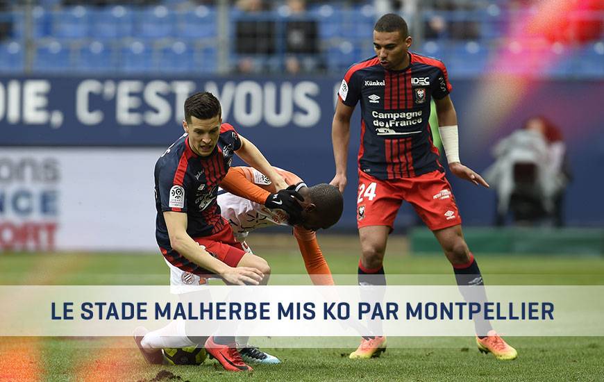 - 23'. Encore sonné par ce but pailladin, le Stade Malherbe concède le break dans la foulée. Suite à un corner sortant de Junior Sambia dévié au premier poteau par Giovanni Sio, Ellyes Skhiri - oublié au second poteau - pousse le "cuir" dans le but . SM Caen 0-2 Montpellier